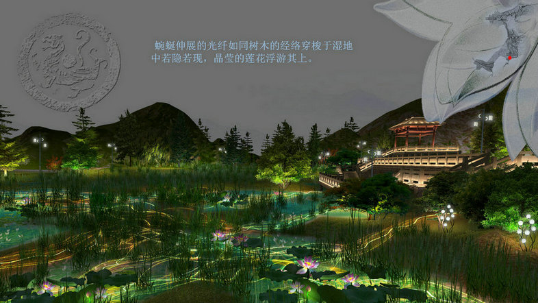 渡口鄉(xiāng)位于宣漢縣東北部,前河上游,面積90.86平方千米,為“百里峽”風(fēng)景區(qū)入口。項(xiàng)目重點(diǎn)打造渡口風(fēng)情小鎮(zhèn)夜景照明,提煉區(qū)域自然人文素材將其融合于夜景照明中。利用互動(dòng)燈光、虛擬現(xiàn)實(shí)技術(shù)、水幕投影等方式增加游客的參與性和體驗(yàn)感。動(dòng)與靜的結(jié)合豐富空間層次,靈活多變的內(nèi)容隨意轉(zhuǎn)換可為景區(qū)提供多種燈光氛圍。動(dòng)靜相宜,交互生輝。