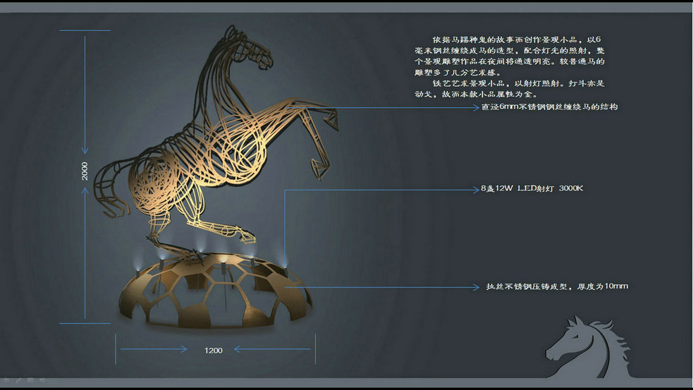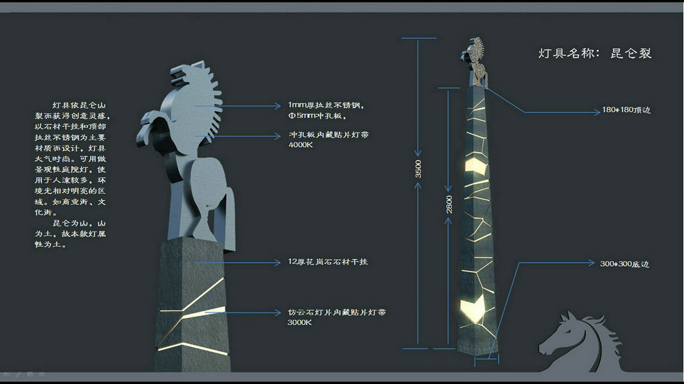 項目簡介:昭蘇縣位于伊犁河谷總體規(guī)劃區(qū)域內(nèi),是伊犁河谷旅游規(guī)劃線路中景點之一。昭蘇歷史悠久,歷史上的昭蘇縣,也叫“特克斯”,曾是烏孫故里。項目所在昭蘇縣位于伊犁河上游特克斯河流域,昭蘇東界特克斯縣。本次照明概念設(shè)計包括范圍內(nèi)各景區(qū)節(jié)點,如:濱河公園入口、階梯廣場、天馬廣場、天馬島、市民廣場等。由于景觀、建筑設(shè)計尚屬概念方案。故而照明設(shè)計以天馬為主題,以燈具設(shè)計為主線提出照明設(shè)計主線及概念。